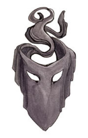 Mask manifestiert sich bisweilen als formlose Dunkelheit an einem Ort, an dem sie nicht existieren dürfte, in der bisweilen auch ein menschlicher Kopf erscheinen kann. In dieser Form kann er nahezu jede Barriere mühelos durchdringen. Bisweilen zeigt er seine Gegenwart auch durch ein leises, sanftes, glucksendes Lachen.