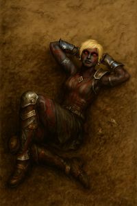 "Dunkelelfen kann ich eigentlich nicht leiden, aber Rauvyl hat sich meinen Respekt verdient. Meine Stimme erzittert voller Ehrfurcht und voller Mordlust, wenn ich sie Herrin nenne und hoffe, dass sie mich zum töten entsendet. Leider lässt sie mich nur selten von der Leine."