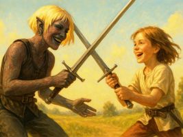 "So, jetzt hör mir mal zu, du Sohn einer verdammten Halbgoblinfrau die von einem verrückten Magier aus