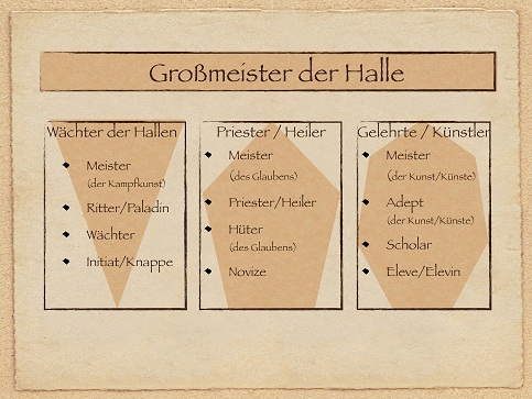 Als Ritter und Paladin der Halle der Hoffnung lernt man die Zeiten zu erkennen, in den ein Schwertarm zu ruhen hat, weil die Feder mächtiger ist als das Schwert. Ein in Weisheit gesprochenes Wort hat die gleiche Schärfe wie ein gut geschliffenes Schwert. Die Wächter der Halle lernen es ebenso scharf zu führen wie die Klinge in ihrer Hand.