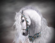 Auf den ersten Blick recht unscheinbar wirkt die schneeweiße Stute mit ihrer feinen gewellten Mähne. Doch sieht man die Leichtigkeit und Natürlichkeit, mit der das Tier sich bewegt, versteht man die etwas eigentümliche Wahl eines calishitischen Namens. Denn wer sich mit Pferden auskennt, wird bemerken, dass es sich bei dem in Gegensatz zu anderen Pferden kleinere Tier um eine Calishiten-Stute handelt. Alles in allem wirkt es friedlich und harmonisch, doch wenn es sein muss, kann dies auch in wilde Entschlossenheit umschlagen. So kennt man es, wenn Barden ihre Lieder auf den jeweiligen Moment abstimmen und wechseln können von einem auf den anderen. Entweder steht es in der Nähe der Reiterin auf freier Fläche und grast vor sich hin. Oder es wird in einer der Stallungen untergestellt. Immer jedoch blicken die Augen dem Gegenüber im ersten Moment ruhig entgegen. Doch fehlt es ihnen dabei nicht an Leben und einer gewissen Heiterkeit.