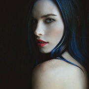 Das Haar, schwarz und glänzend wie Rabenfedern, trägt sie zumeist weichfallend über einer Schulter, wobei oftmals feine Fäden oder Perlen oder Feder oder Knöchelchen hineingewunden sind zur Zier. Dunkle, geheimnisvolle Augen mit einem Blick, der mal heiter und listig, mal aber wissend,ernst und melancholisch ist, beherrschen ihr ebenmäßiges Gesicht. Aber manchmal verliert sich ihr Blick auch in die Unendlichkeit und sieht Dinge, die anderen fern sind. Ihre Handrücken sind mit feinen Linien verziert, die bis zu den Fingernägeln reichen und wohl nicht nur reiner Schmuck sind. Eine Vielzahl schmaler Armreifen klirren um ihre Handgelenke. Wer einen Blick auf ihre rechte Handfläche erhaschen kann, wird inmitten des Handtellers eine runde Narbe sehen können, die sie immer mal wieder berührt.
