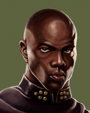 Taios Gestalt mag auf den ersten Blick vielleicht fremd und furchterregend wirken: Taio ist mehr als zwei Schritt hoch gewachsen und sein massiger, muskulöser Brustkorb erinnert an einen schwarzen Turm. Die Schultern sind breit und münden in durchtrainierte, starke Arme mit Händen so groß wie Teller.