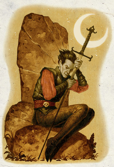 Schwerter des Cyric: Die Schwerter von Cyric sind der militante Zweig der Priesterschaft. Geschützt durch Kettenhemden, Schienen- oder Plattenpanzer und mit Langschwertern und Dolchen bewaffnet sind die Schwerter jederzeit bereit für den Krieg in all seinen Formen. Komplett wird ihre Uniform durch den purpurnen Waffenrock, welcher mit Cyric´s heiligen Symbol bestickt ist. Sie sind geschaffen für den Kampf gegen die anderen Kirchen und ihr Hass ist so gross, dass sie jeden auf der Stelle töten, der auch nur das Symbol eines anderen Gottes trägt. Sogar ein falsches Wort, in gesellschaft dieser, kann zu einem schnellen Tod führen! Während die Läuterer die Gewalt und die Predigt verbinden, so ist Gewalt für die Schwerter das einzige Mittel. Nicht umsonst geht in den Tällern und um den Mondsee folgende Redensart herum: Die Läuterer planen die Komplotte, die Schwerter führen sie aus.. Das heißt aber keinesfalls, dass die Schwerter nur die offene Gewalt kennen. Wenn es die Situation erfordert gehen sie durchaus subtil vor und häufig schleichen sie in der Nacht wie Diebe durch die Gassen um ihre Feinde durch Gift oder einfach übele Gerüchte unschädlich zu machen. Sie sind Meister wenn es darum geht Cyric´s Hinterhältigkeit und Zwietracht einzusetzen und hinterlassen nichts als Tod, Zerstörung und Uneinigkeit auf ihren Wegen.