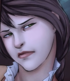 Ihr ovales Gesicht, eine breite Nase und das spitz zulaufende Kinn, wird von großen, grünen Augen dominiert, die manchmal ein wenig traurig wirken. Die Lippen ihres Kussmundes ziehen sich in die Breite und wenn sie einmal lacht, dann kommt dies gar noch deutlicher zur Geltung, lässt auch ihre Wangenknochen zum Vorschein bringen. Ihrer Umgebung zeigt sie aber für gewöhnlich nur ein kontrolliertes, höfliches Lächeln.