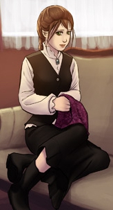Betont wird ihr elegantes Auftreten durch die Wahl ihrer Kleider, die nur aus bester Tuche gefertigt sind und sich den Gegebenheiten anpassen. Aber Renata zieht auch gerne einmal Hosen an und trägt dann an ihrer Seite einen langen Degen, mit verziertem Muschelkorb.
